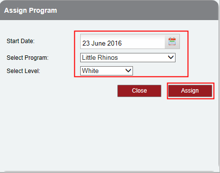 Enter the Start Date (date member was promoted to that level), Program and Level. Then click Assign.