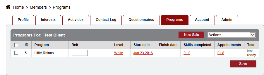 Programs and levels can be used to track all sorts of things in your business, from belts if you run a martial arts school, levels if you run a swim program or even just creating progress levels for your personal training clients.