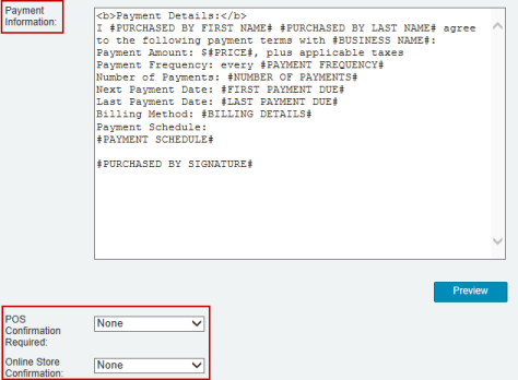 •POS Confirmation Required: Choose the type of confirmation at the point of sale, between None if no confirmation is required, Signature if you will be using a signature pad or Digital Confirmation where the client can just simply type their name as acceptance.