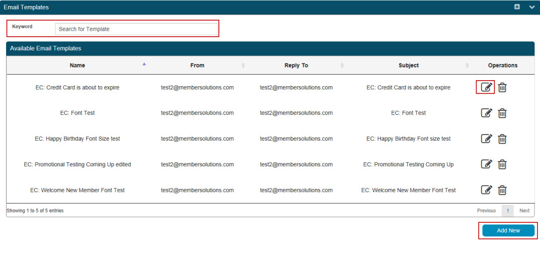 If you wish to edit an existing template, click on the ‘edit’ icon under Operations from the Available Email List.