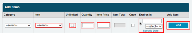 - The Item Total will be calculated based on the Quantity and the Item Price (Quantity X Item Price = Item Total)If you want to add an item that clients would get only one time, select Once so that when the package renews, it won't renew with the item marked as Once.