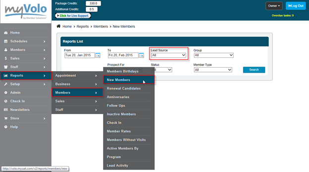 The New Member Report in the Reports section will show you all new members within a given time frame along with their lead source. You can also filter the report by Lead Source to search for all members who came to you by one specific Lead Source.