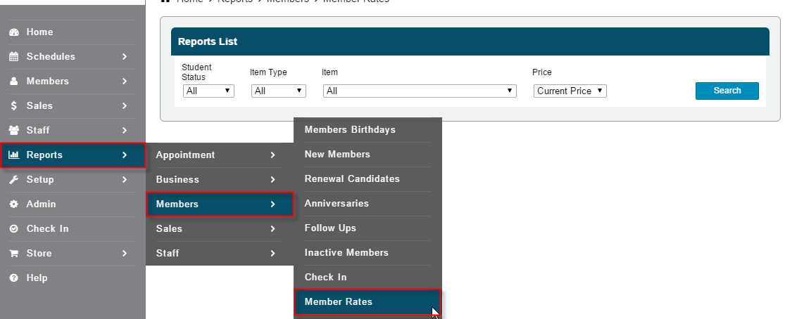 Member Rates Report