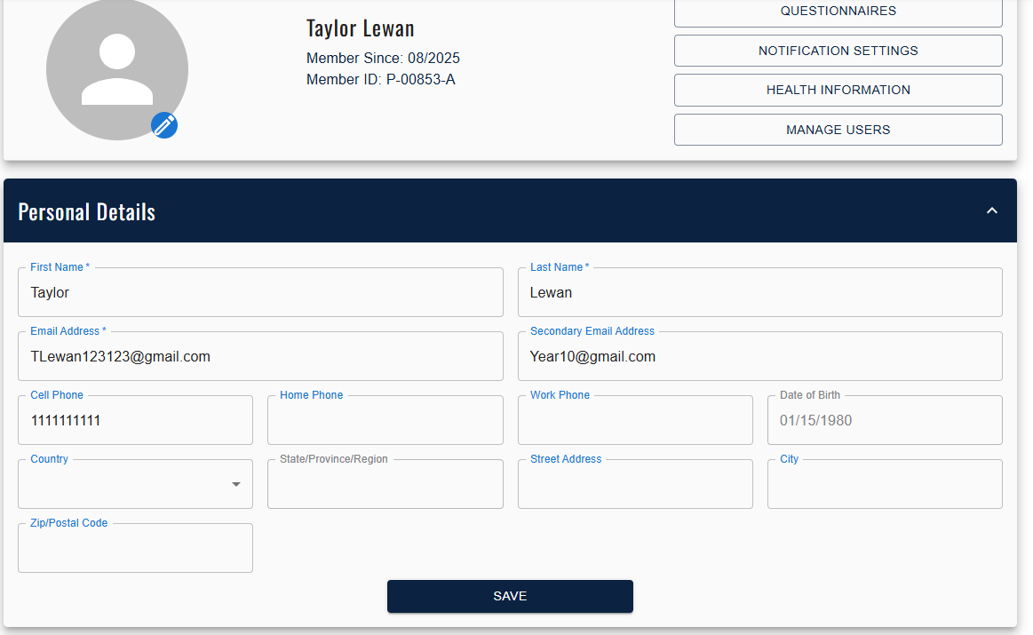 In Member Portal, users can input their own secondary email addresses, as well: