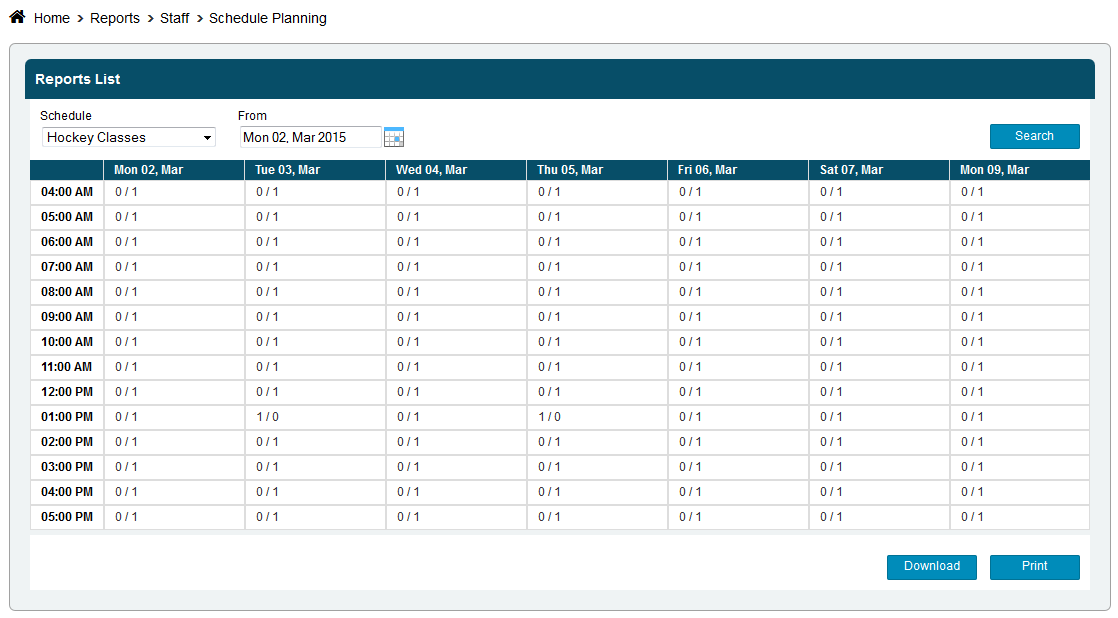 This report gives you a bird’s eye view of each area of your business. Select a schedule and this report will tell you how many appointments you have booked in each time slot as well as how many staff you have available. Instantly see where you need more staff and what the most popular hours are.